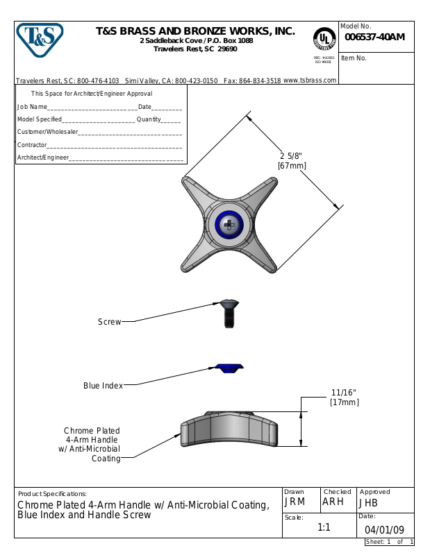 Chrome Plated 4-Arm Handle w/ Anti-Microbial Coating,
