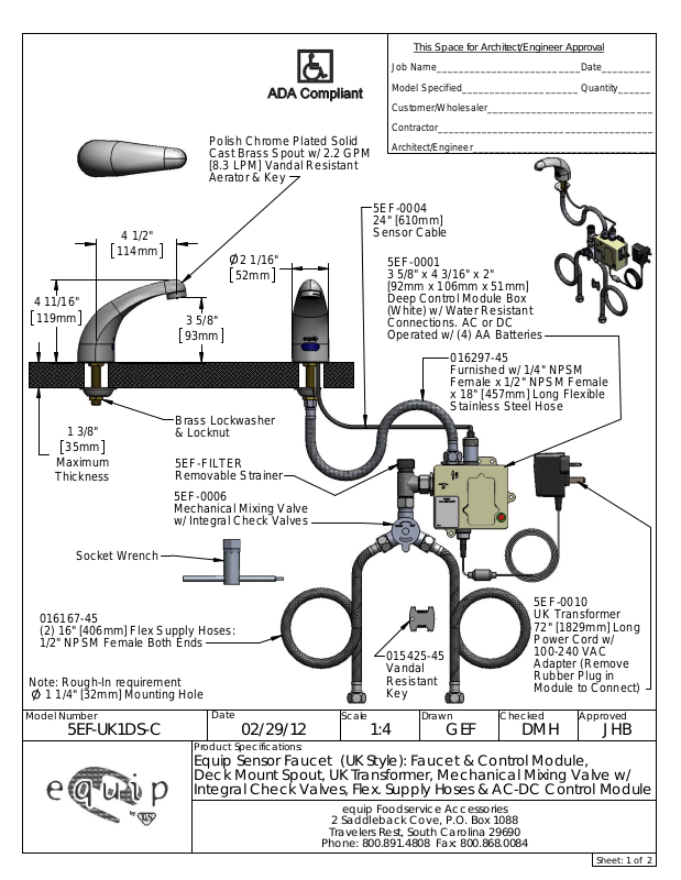 Equip Sensor Faucet (UK Style): Faucet & Control Module,