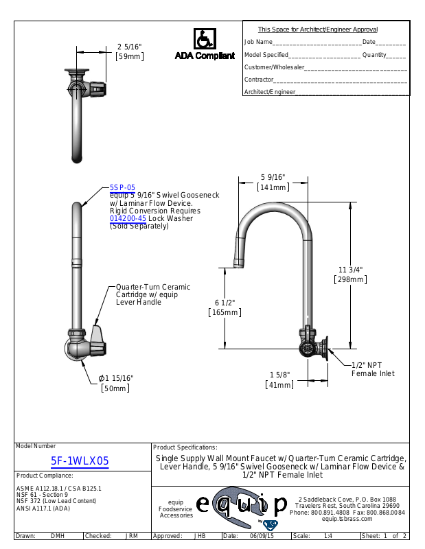 Single Supply Wall Mount Faucet w/ Quarter-Turn Ceramic Cartridge,