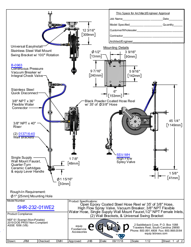 Open Epoxy Coated Steel Hose Reel w/ 35' of 3/8" Hose,