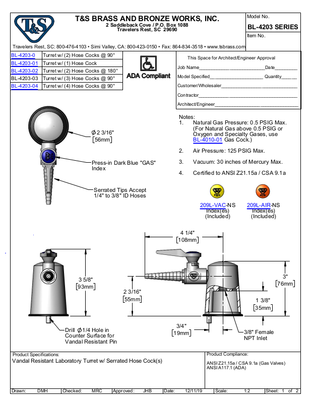 Travelers Rest, SC: 800-476-4103 • Simi Valley, CA: 800-423-0150 • Fax: 864-834-3518 • www.tsbrass.com