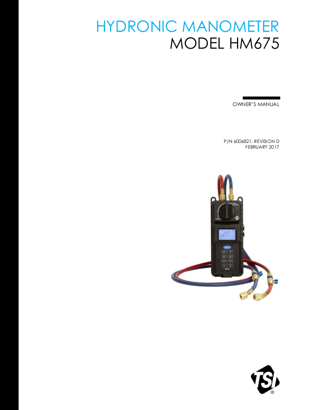 TSI recommends that the HM675 Hydronic Manometer receive an annual