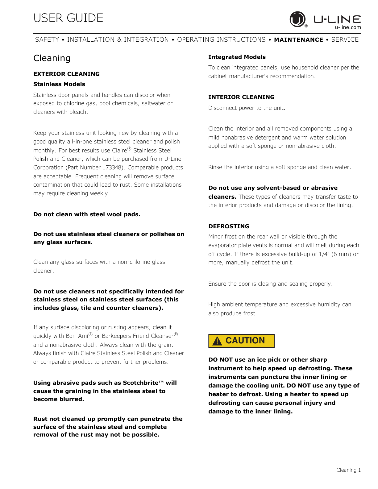 stainl ess steel cl eaners an d U- Li ne C l ear Ic e Mak e r
