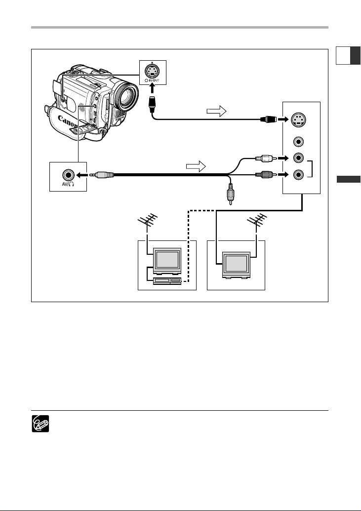 • When recording via the AV terminal, make sure that “AV \DV” is displayed on the