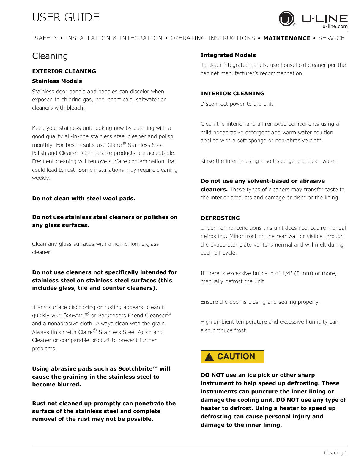 SAFETY • INST ALLA TION & I NTEGRA TION • OPERA TI NG I N STR U CTIONS • MAINTENANCE • SER V I CE