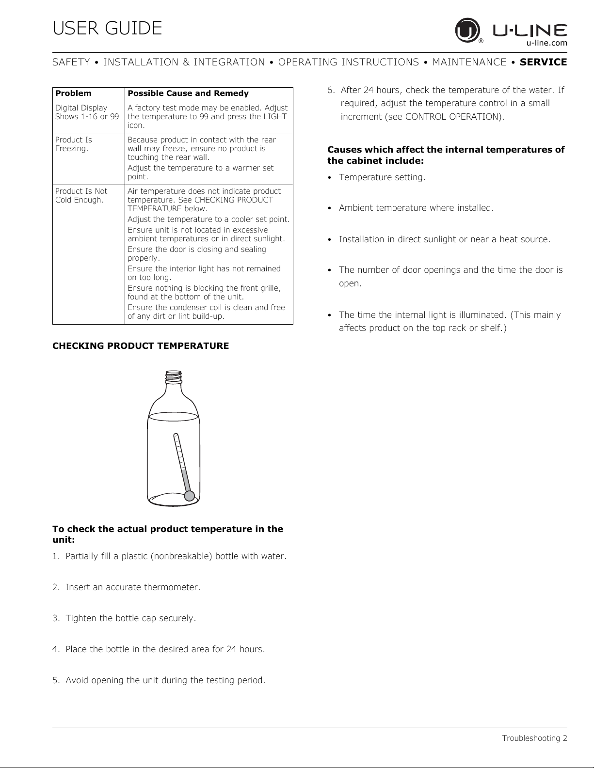 2 . Serv i c e or r e p a i r s per f orm e d on th e u n i t w i t h ou t pri o r w r it t e n app r o v a l f r om U - L i n e is n o t perm it ted . If th e u n i t ha s been