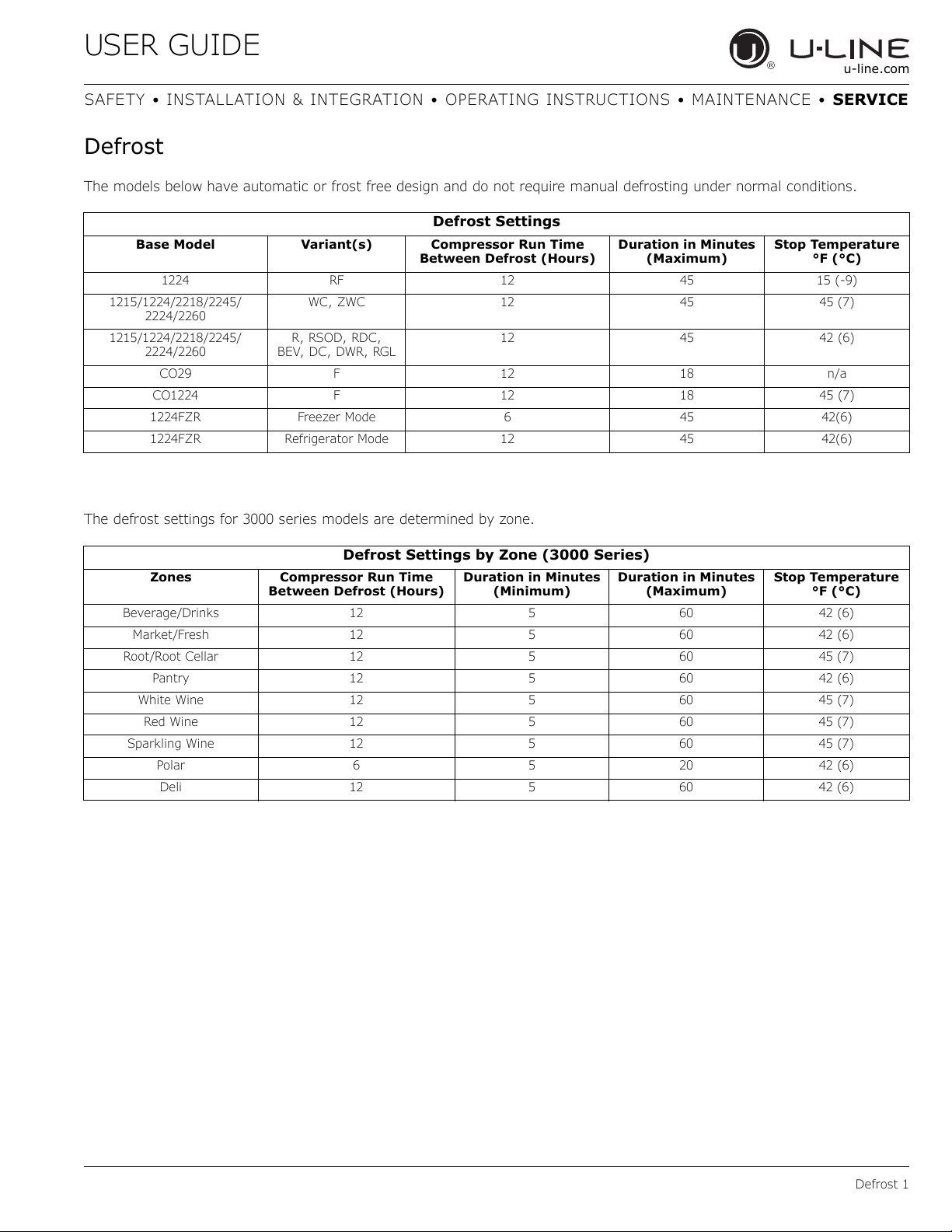 Defrost Set t ings b y Z o ne (3000 Series)