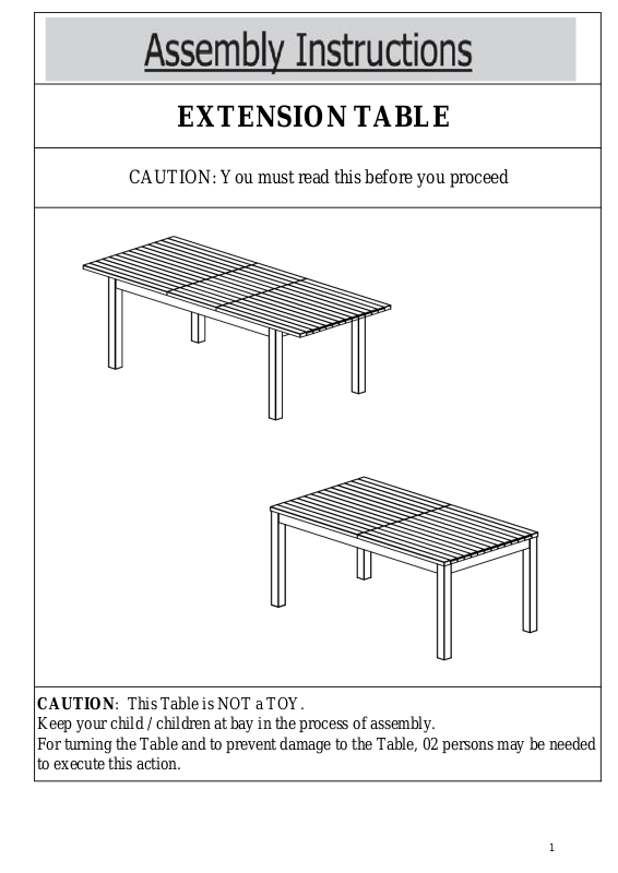 Caution: Do not Lean on or apply pressure to the table when it is pulled open. This
