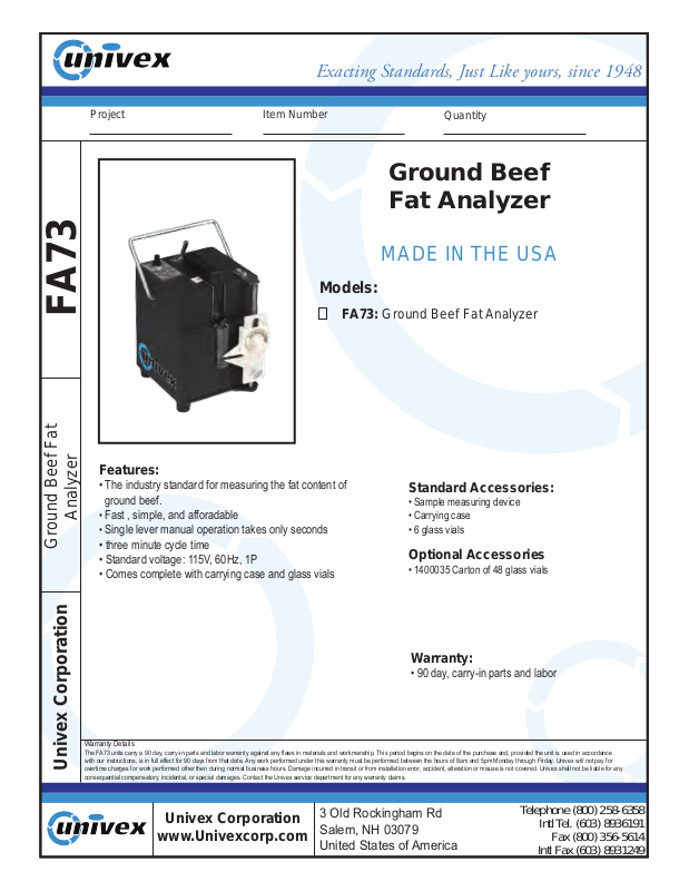 overtime charges for work performed other then during normal business hours. Damage incurred in transit or from installation error, accident, alteration or misuse is not covered. Univex shall not be liable for any