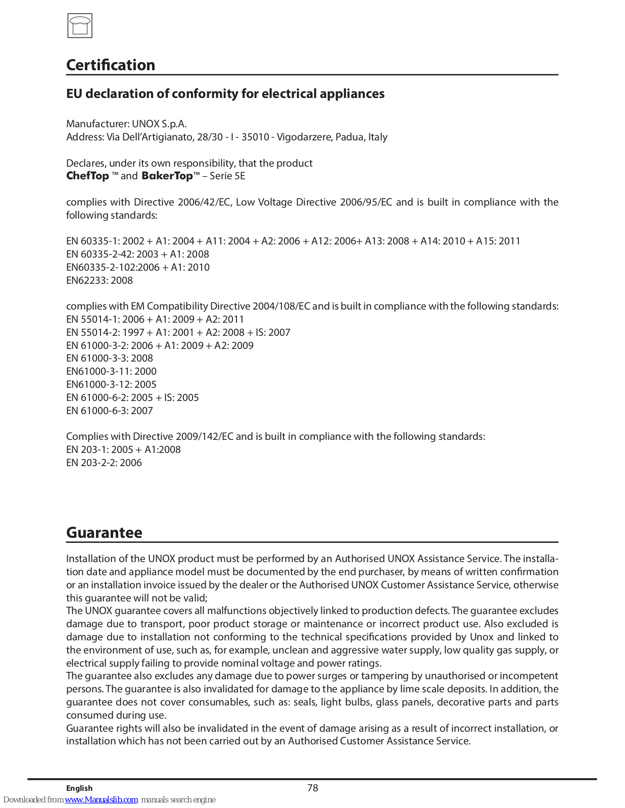 Unox BakerTop, ChefTop, XVC-XBC BakerTop, XVC-XBC ChefTop Instruction Manual