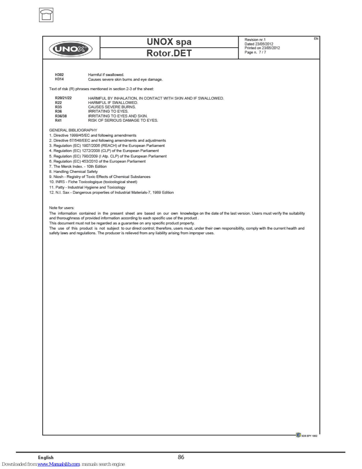Unox Instruction Manual