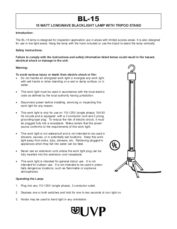with any questions you may have regarding the BL-15. If returning the product to UVP, obtain a Returned