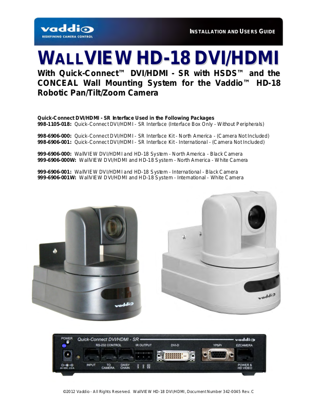 (System Includes: Vaddio HD-18 Camera, Quick-Connect DVI/HDMI - SR Interface,