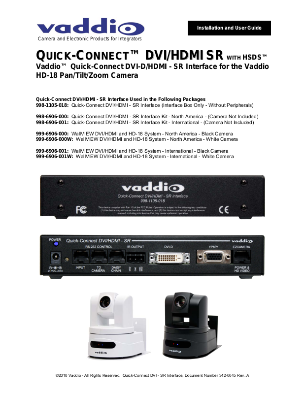 (System Includes: Vaddio HD-18 Camera, Quick-Connect DVI/HDMI - SR Interface, Wall