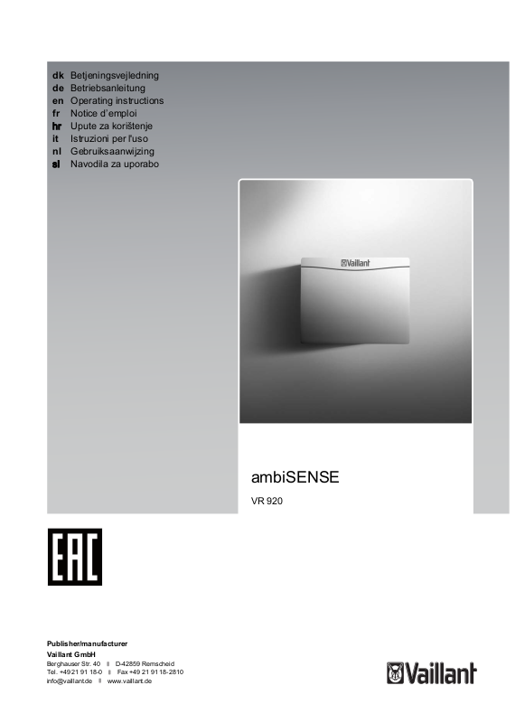 – ambiSENSE je mogoče uporabljati s komunikacijsko enoto Vaillant VR920 z naslednjimi številkami artikla: