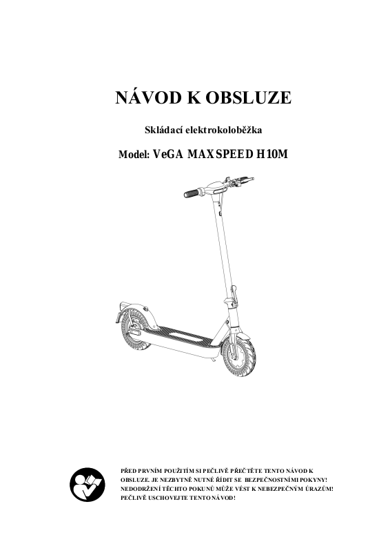 Před použitím elektrické koloběžky si pozorně přečtěte všechny pokyny.
