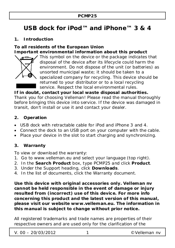 Thank you for choosing Velleman! Please read the manual thoroughly
