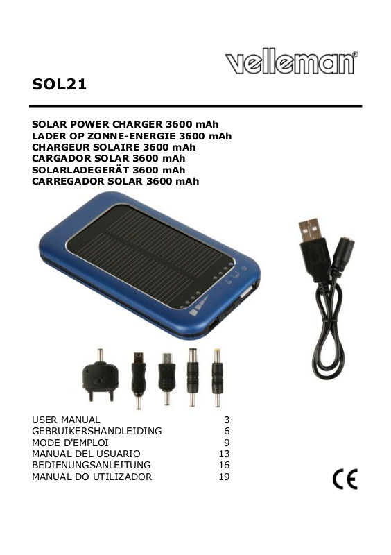 LEDs indicate the charging level (4 red LEDs means the SOL21 is
