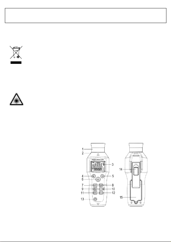 • Handle the distance meter with care. Keep it dry and clean, and avoid shocks, extreme temperatures, dust and water.