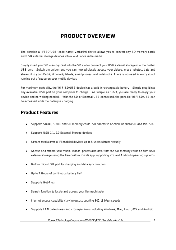 Power 7 Technology Corporation – Wi-Fi SD/USB Users Manuals v1.0