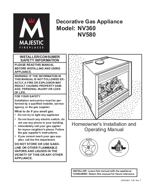 • This new Vermont Castings or Majestic product must be installed by