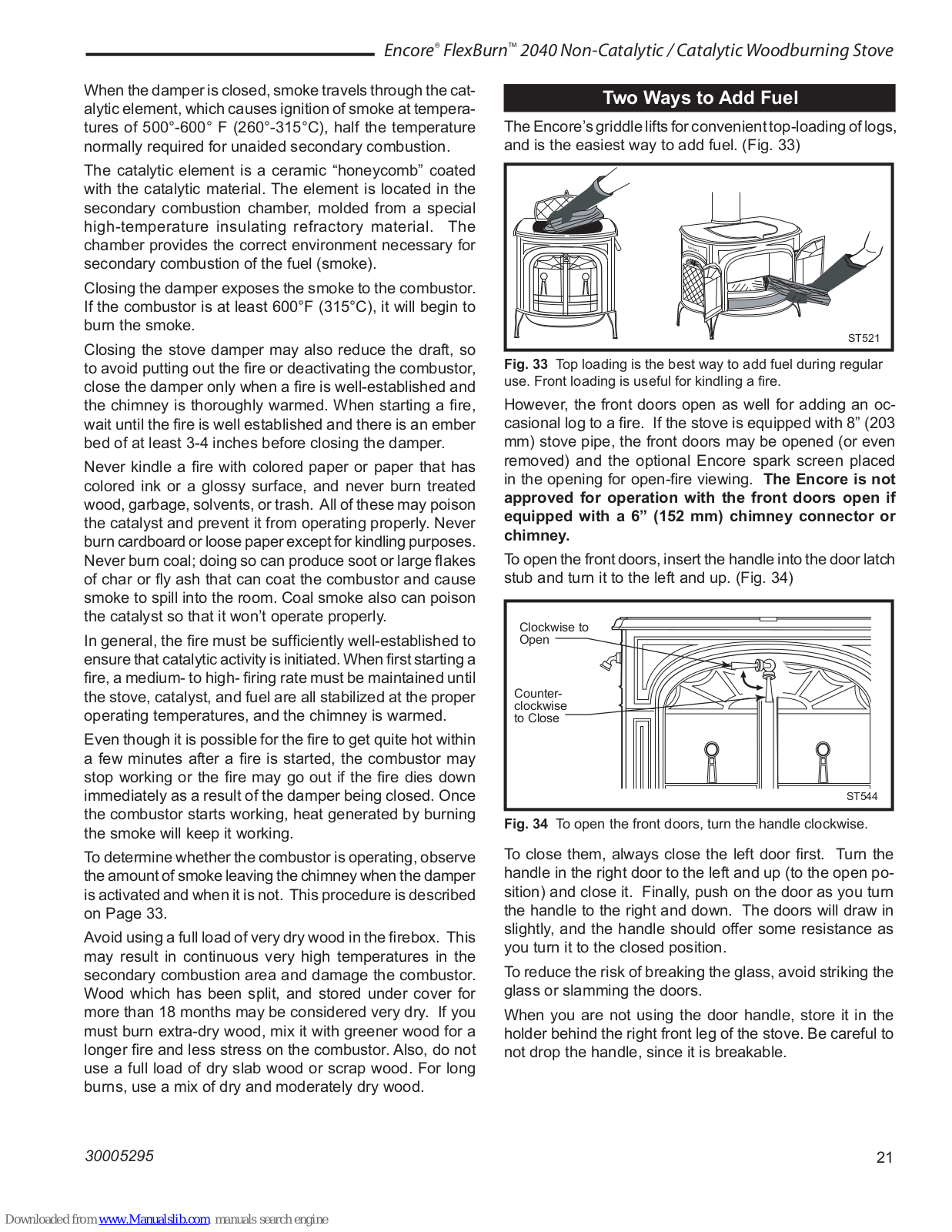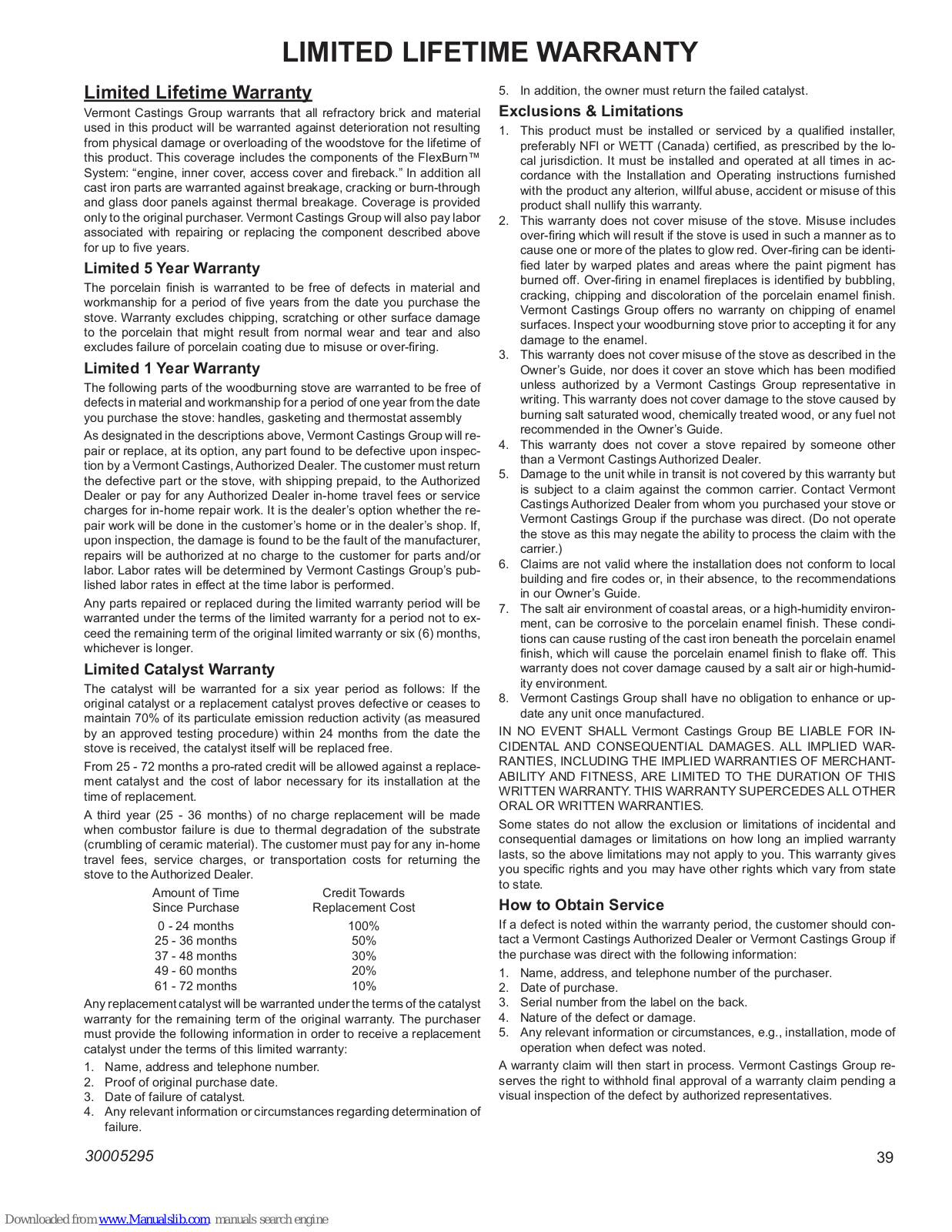 Vermont Castings Encore Flexburn 2040 Homeowner's Installation And Operating Manual
