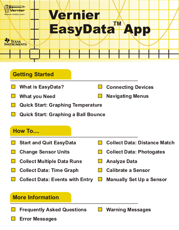 The EasyData App is a graphing calculator application. It lets you collect, view,