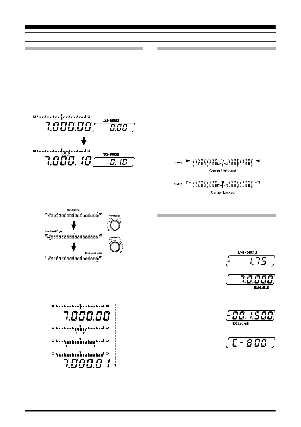 provided for band selection, and each band key accesses two independent VFO frequency/mode/filter