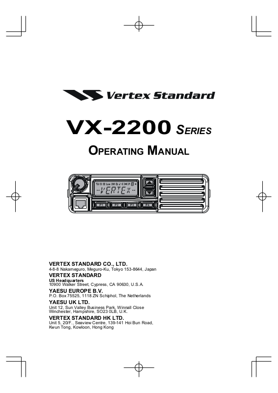 The pages which follow will detail the many advanced features provided on the VX-2200 Series transceiver. After reading this manual, you may wish to consult with