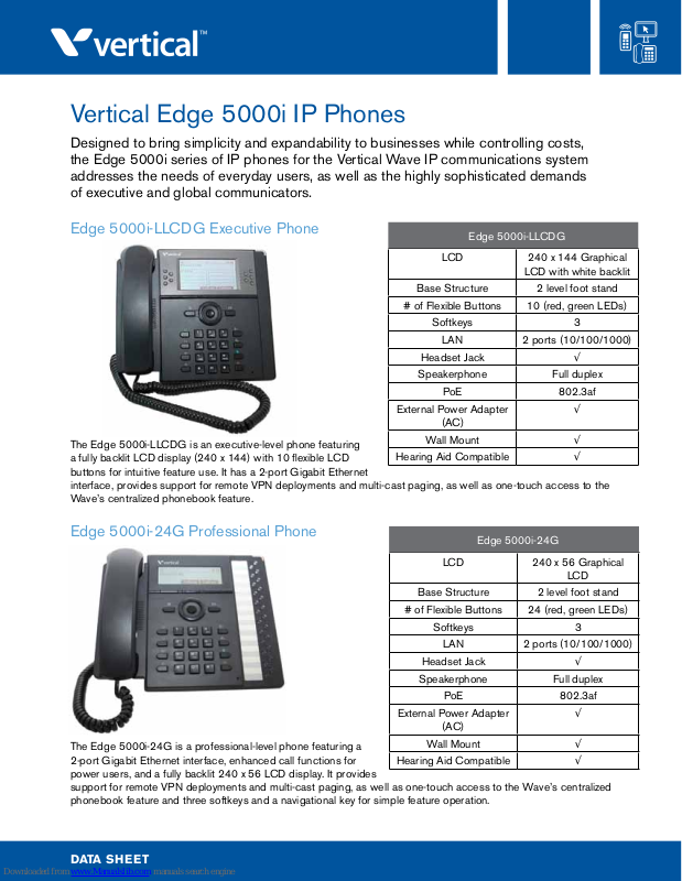 Designed to bring simplicity and expandability to businesses while controlling costs, the Edge 5000i series of IP phones for the Vertical Wave IP communications system addresses the needs of everyday users, as well as the highly sophisticated demands of executive and global communicators.