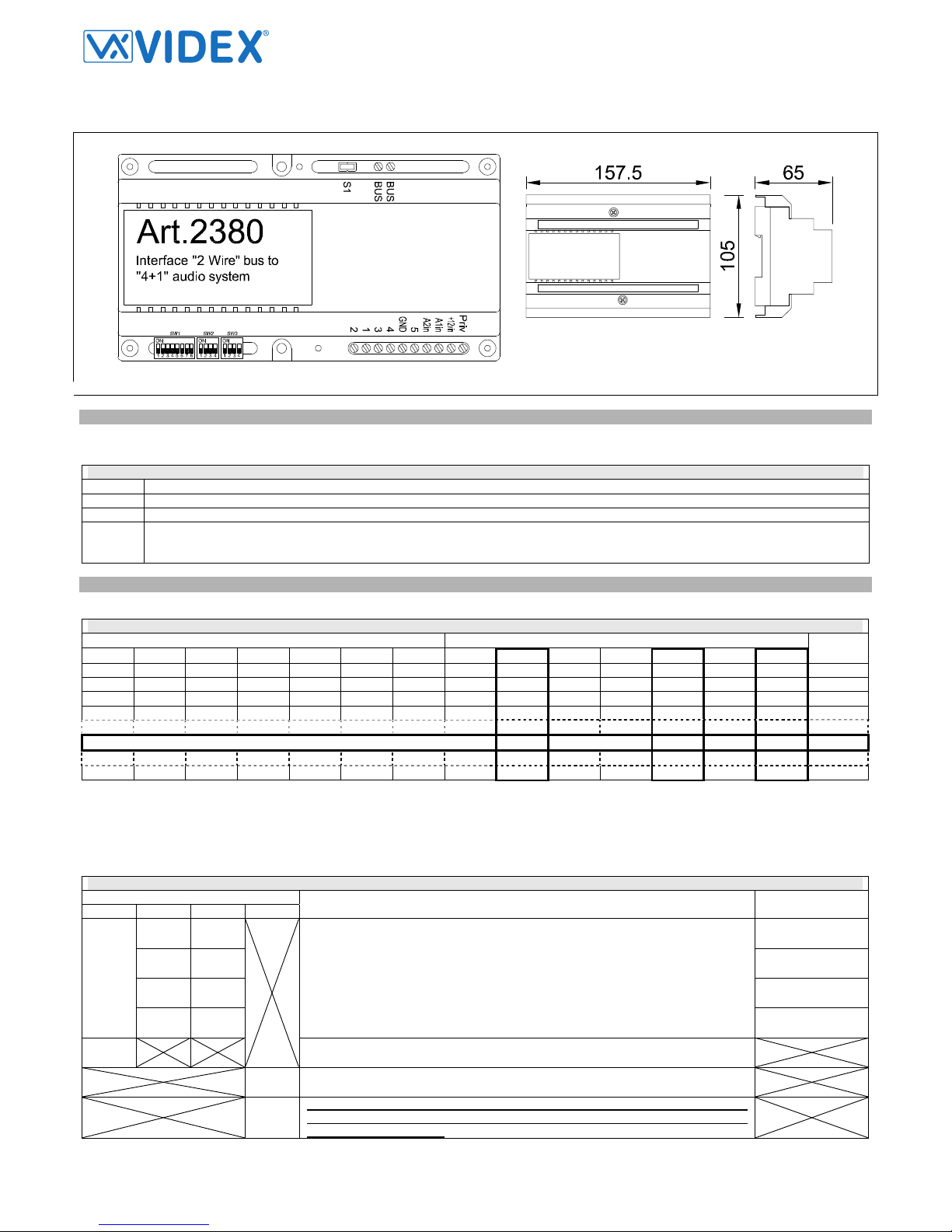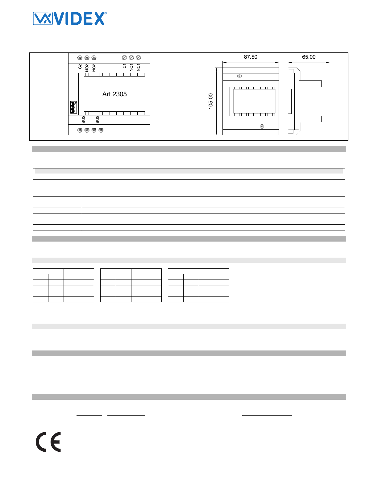 The table above shows how to set the address of the videophone. Considering that ON = 1 and OFF = 0, multiply each