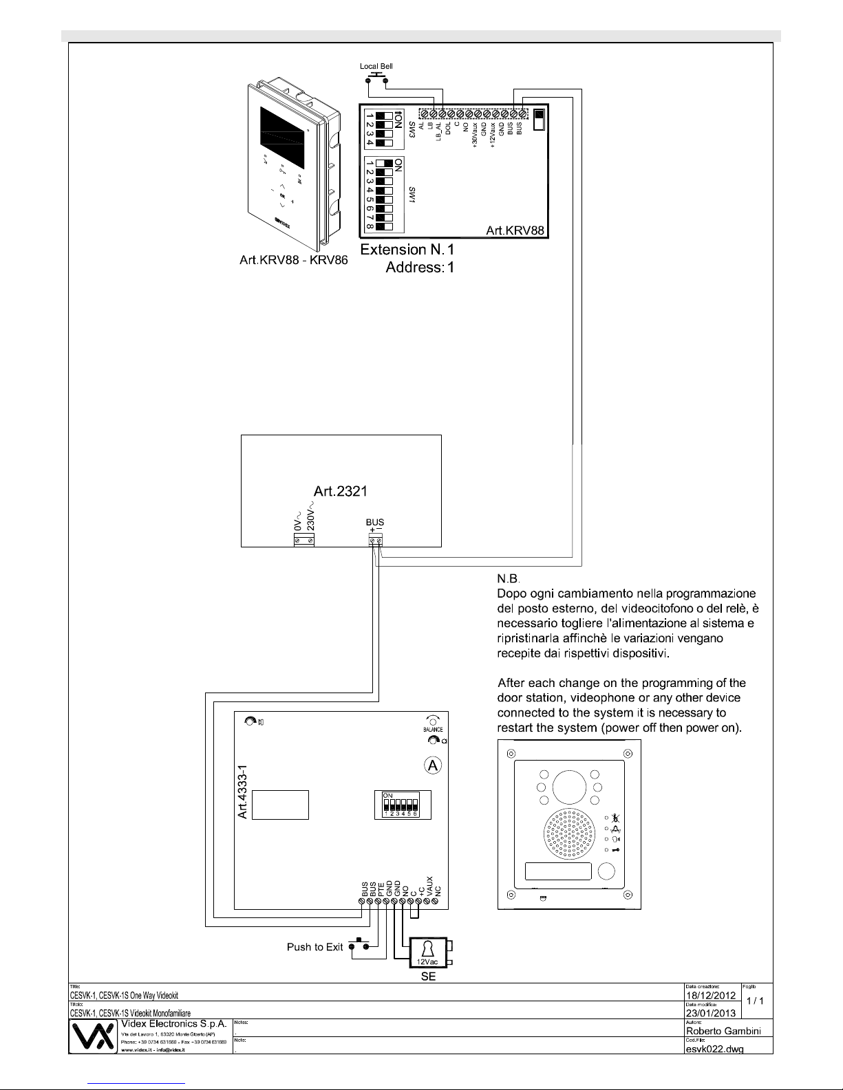 From any of the two OSD menu’s, if the videophone switches off because of the timeout, the controls and the programmings are not stored.