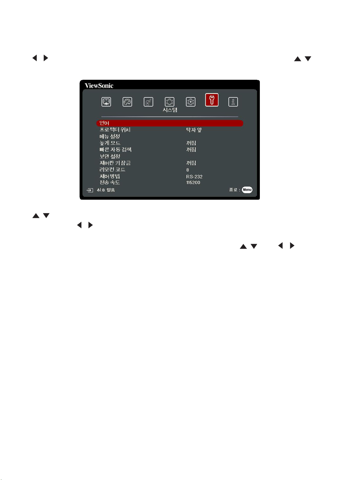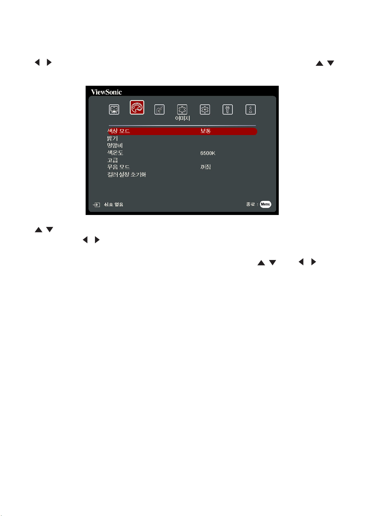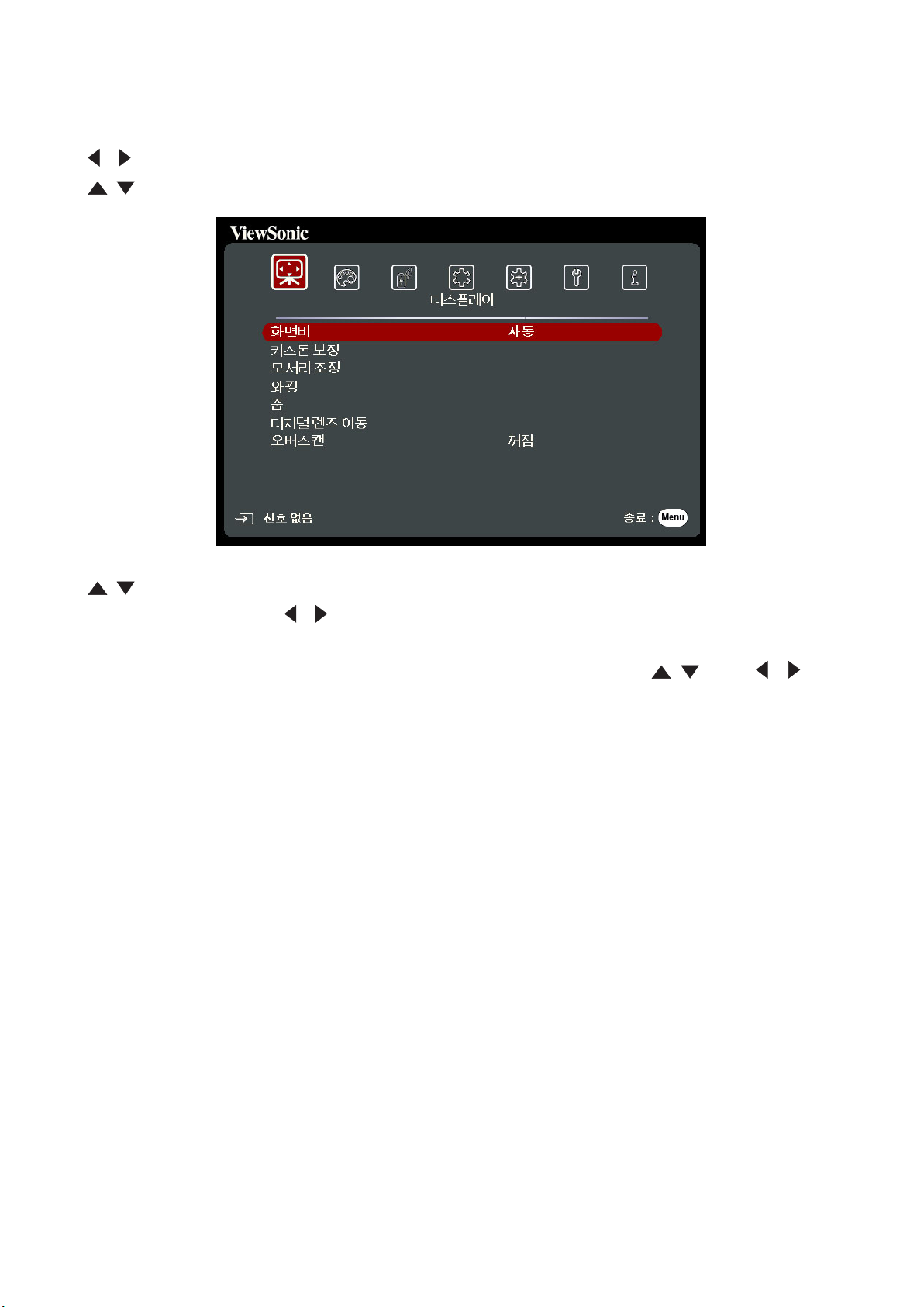 원하는 메뉴 항목을 선택하고 온스크린 디스플레이(OSD)