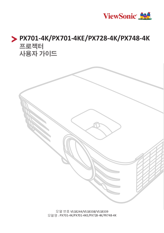 보증 정보는 현지 대리점 또는 ViewSonic® 지사에 문의하시기 바랍니다. 램프