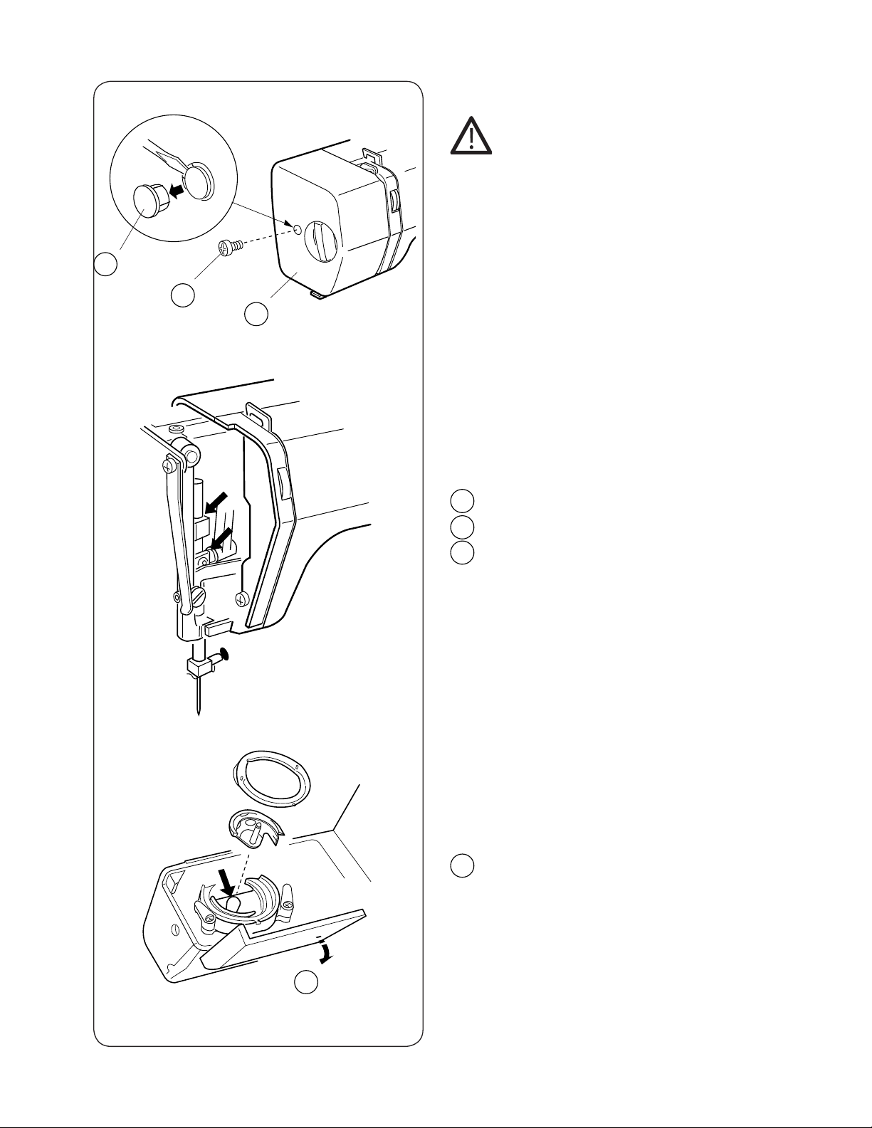 • Always unplug sewing machine from the electrical outlet when removing covers,