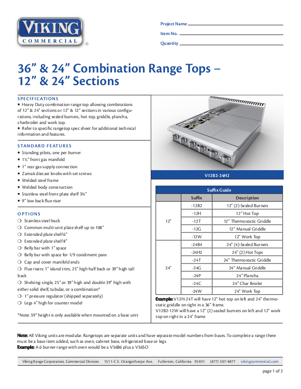 Note: All Viking units are modular. Rangetops are separate units and have separate model numbers from bases. To complete a range there