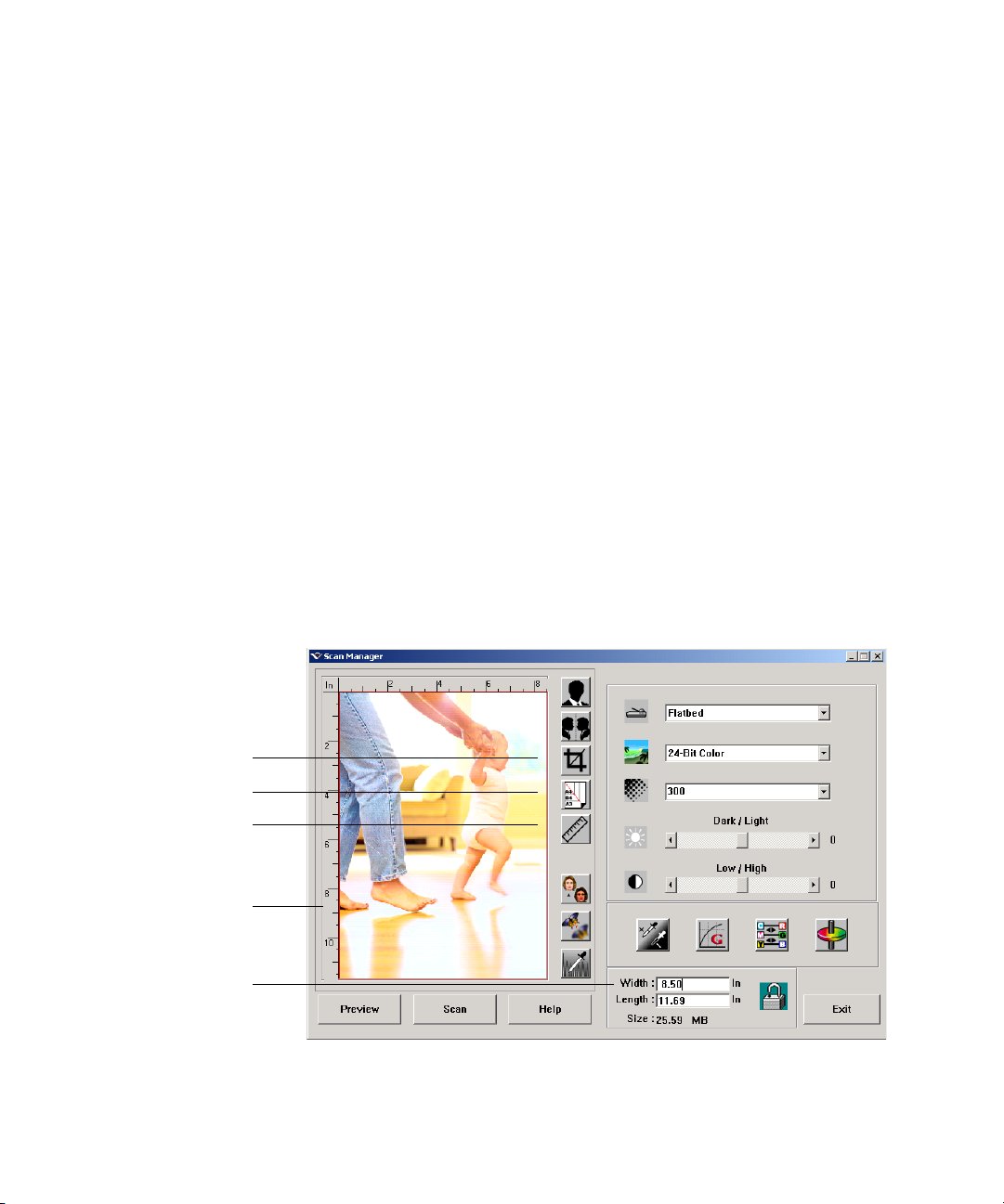 Paper Guide—Holds pages in place. Adjust to fit the size of the paper to scan.