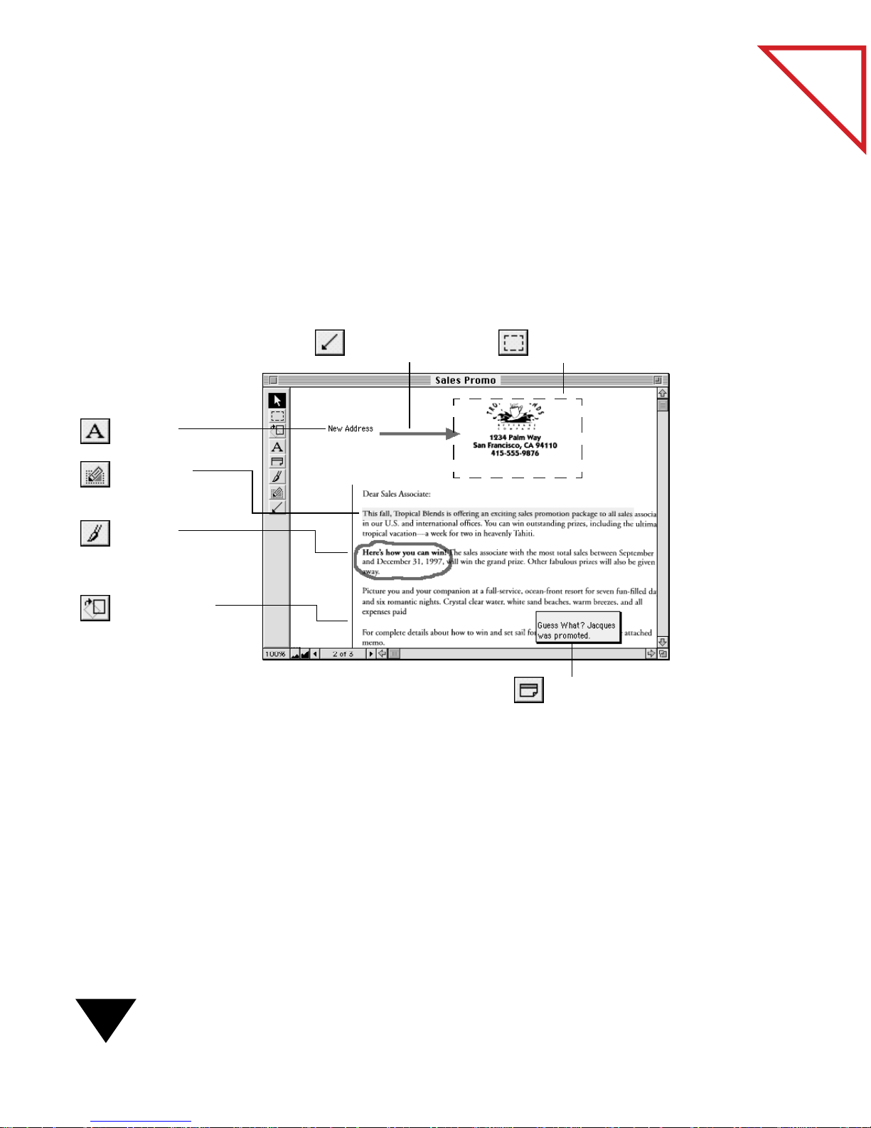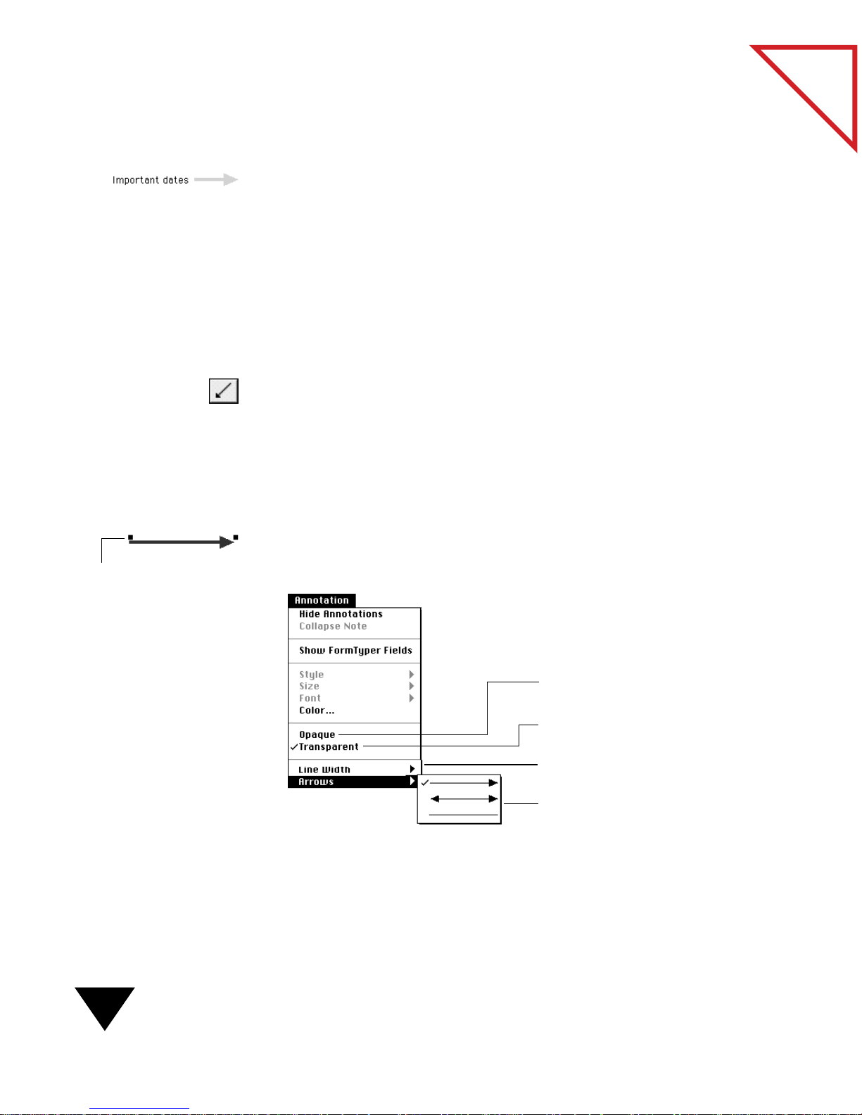 Use the Arro w tool to add lines and arrows to a page. This is a conv enient