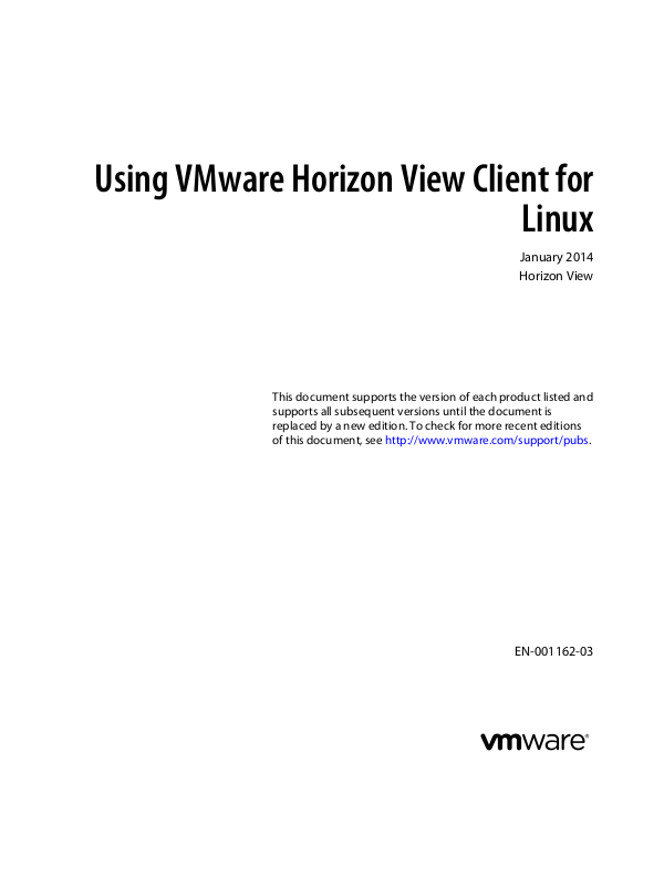 NOTE This document pertains to the Horizon View Client for Linux that VMware makes available on