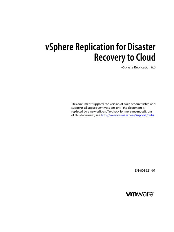 This vSphere Replication for Disaster Recovery to Cloud is updated with each release of the product or when