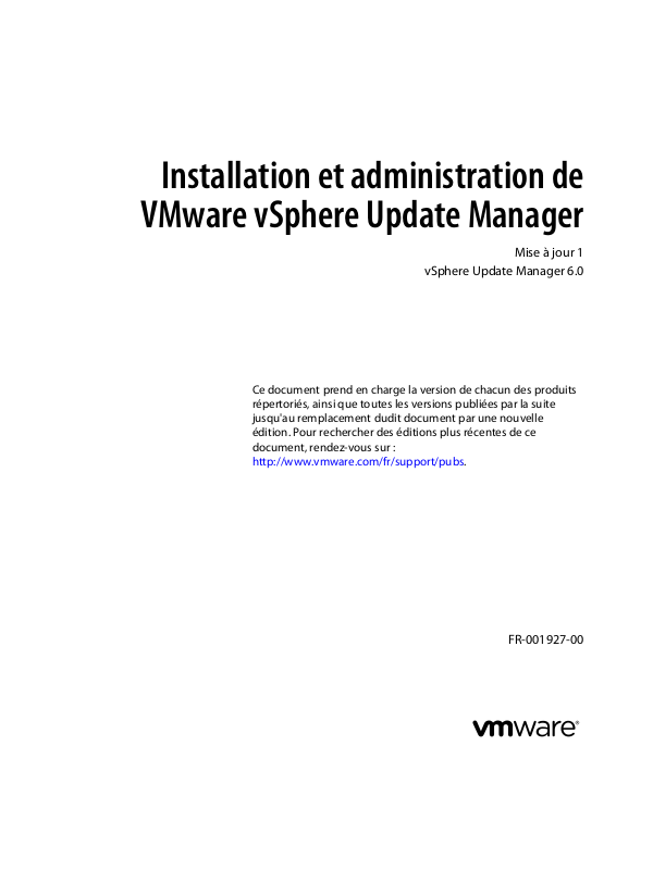 Vous trouverez la documentation technique la plus récente sur le site Web de VMware à l'adresse :