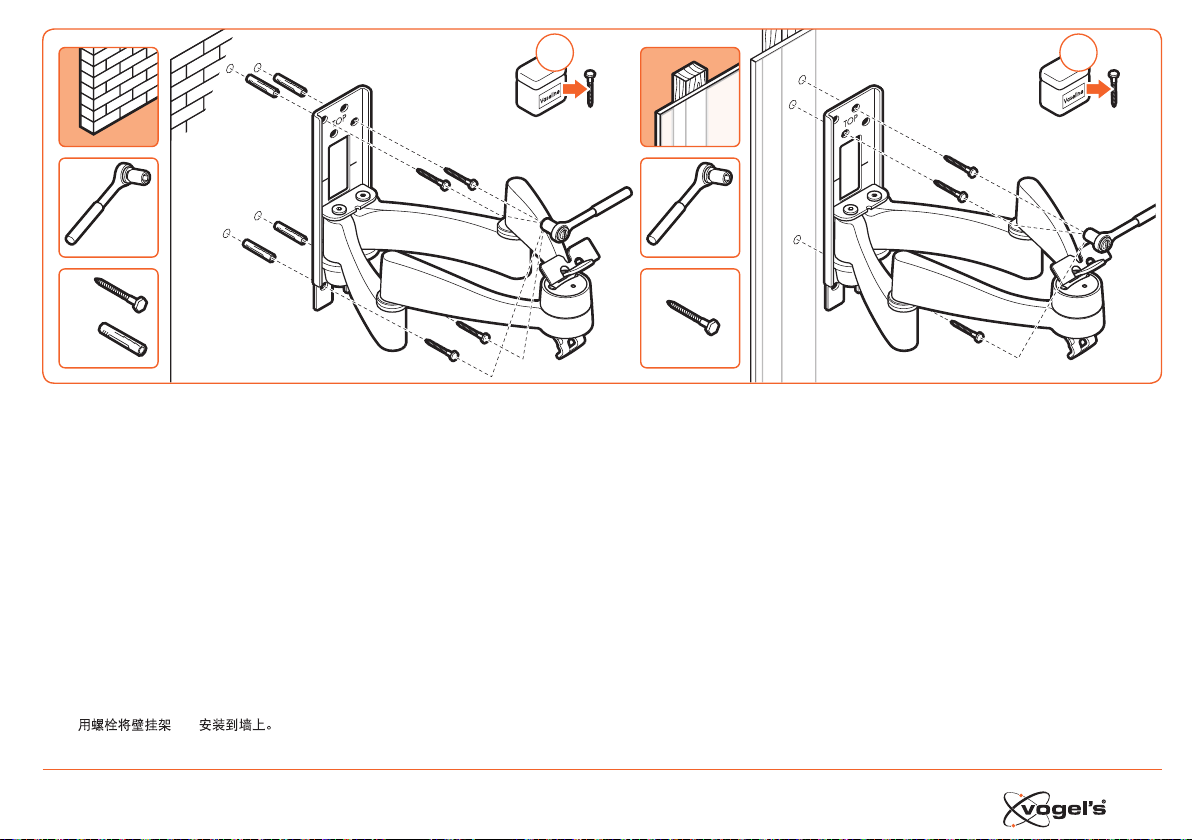 从您电视机的用户手册中找出正确的安装材料。