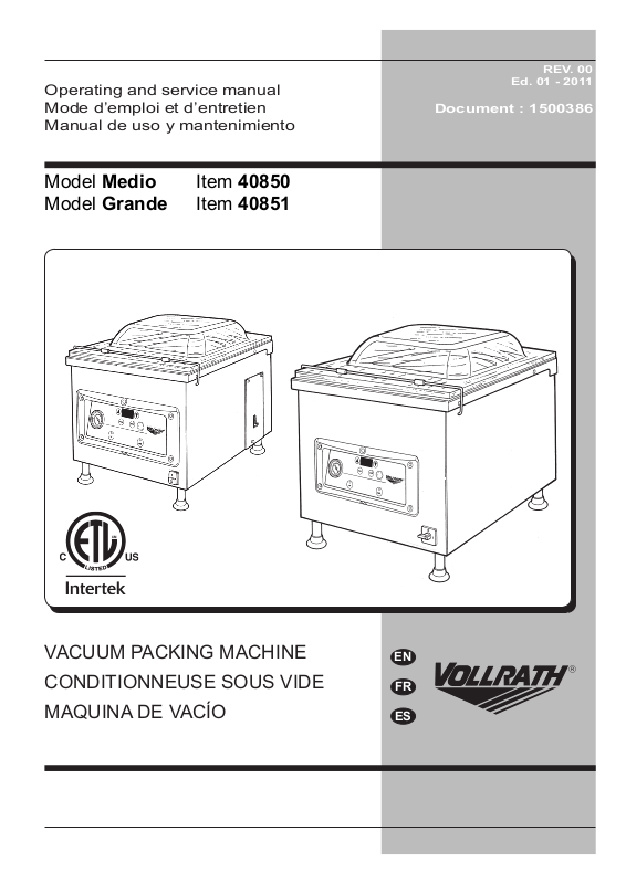 • To obtain warranty service, the buyer will be responsible to return to The Vollrath Company LLC any product (other than gas equipment that is permanently