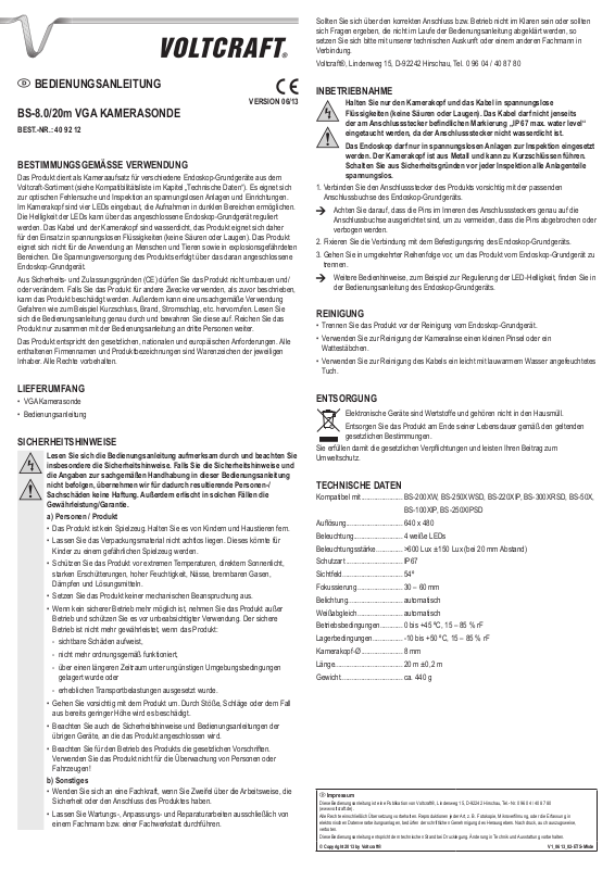 This product is a camera attachment for various endoscope main units from the Voltcraft