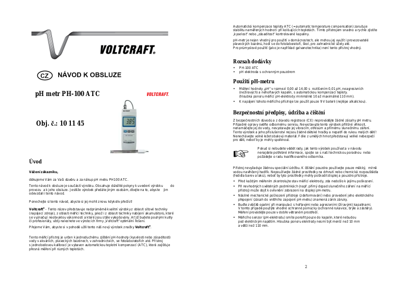 děkujeme Vám za Vaši důvěru a za nákup pH metru PH100 ATC.