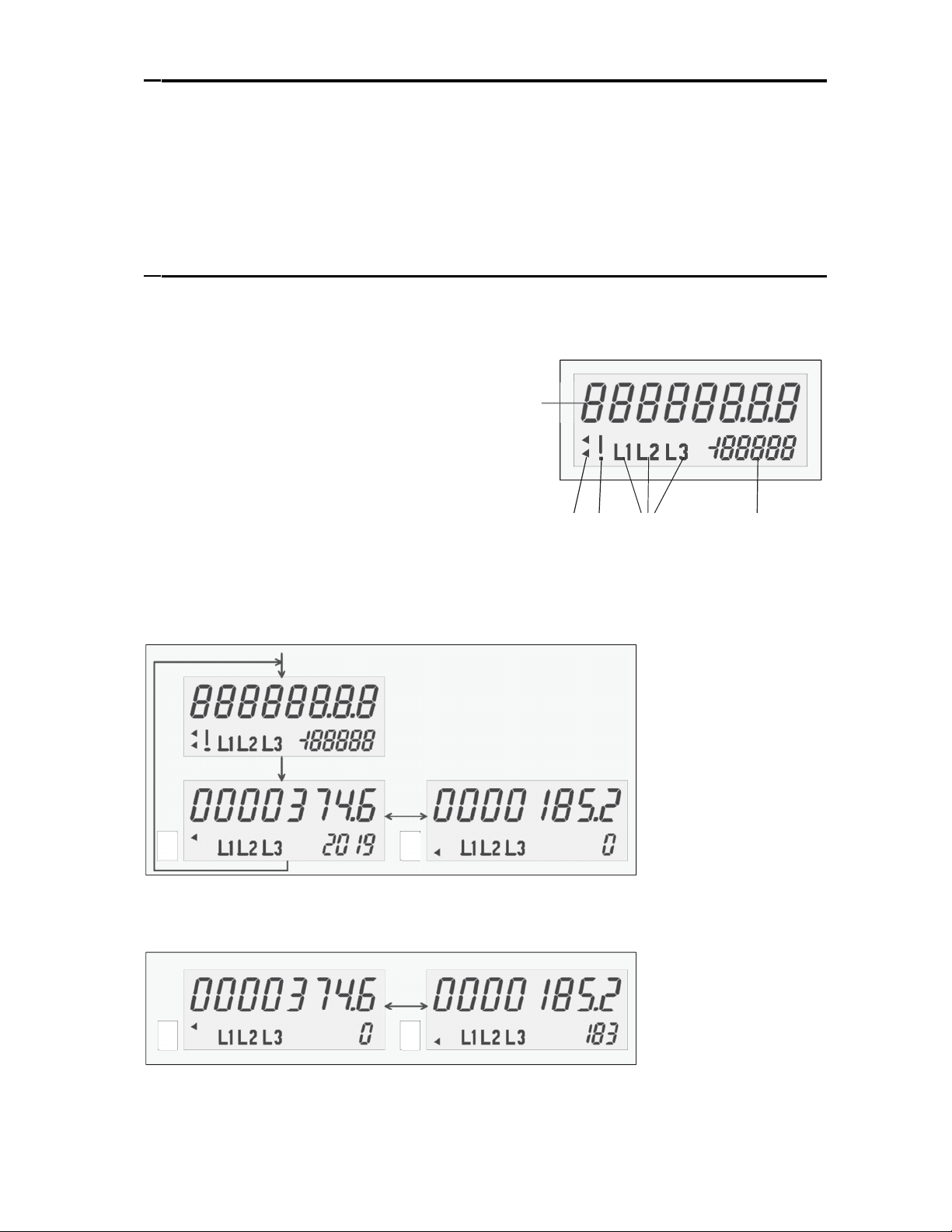 A kijelzés kb. 15 másodpercenként vált az importált (+A) és az exportált (-A) energia között. A kijelzõn látható nyíl azt mutatja, hogy melyik