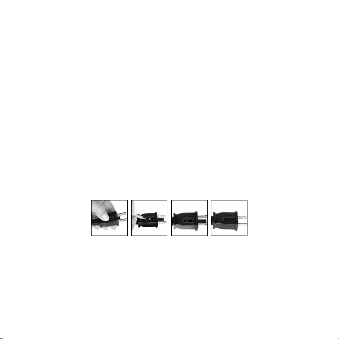 posite of the blades of the plug, then carefully push in the other end. Only push against the metal
