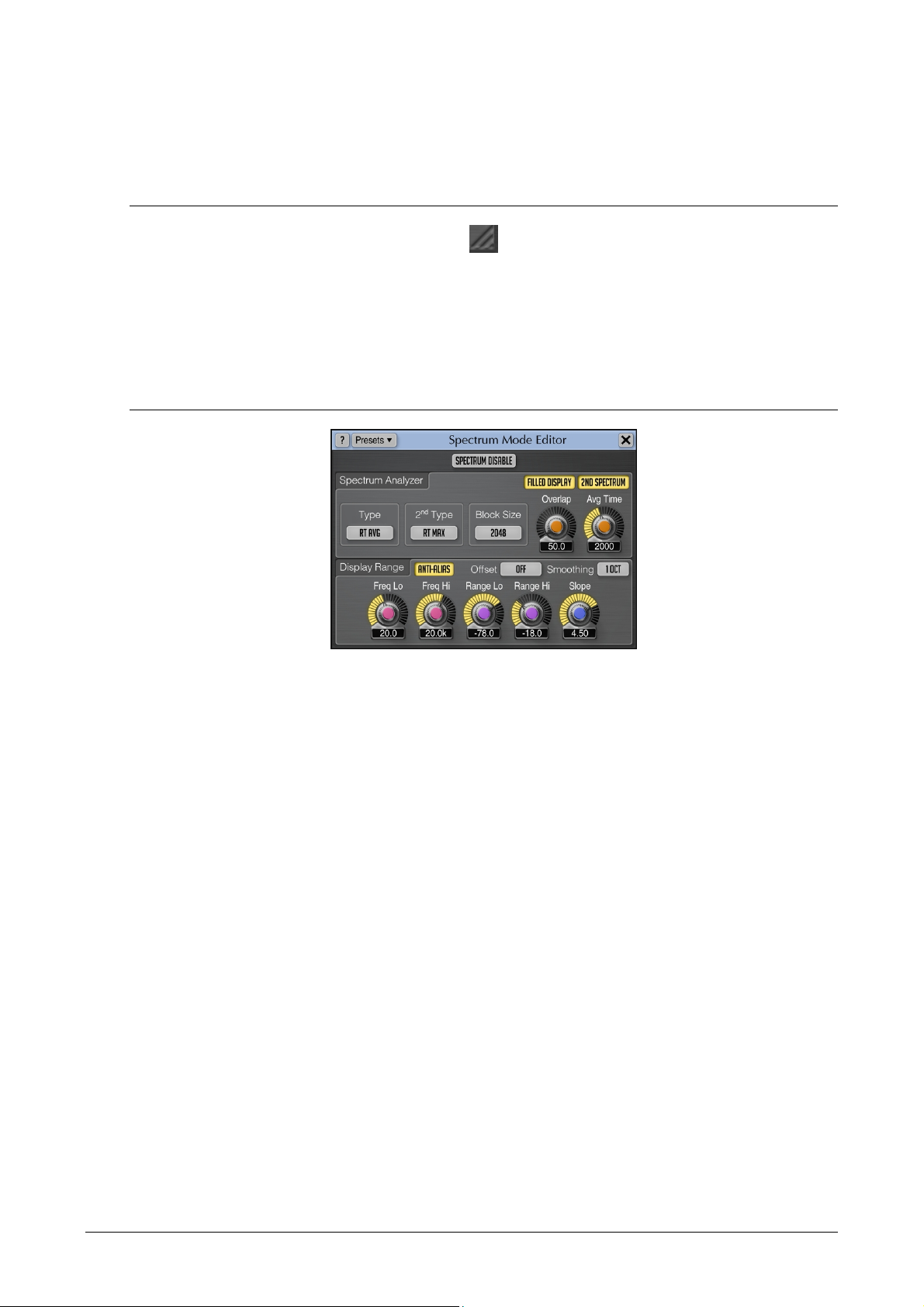 This part of the user interface contains several control buttons: the “Presets” button