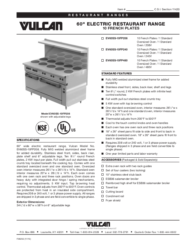 NOTE: In line w ith its policy to co ntinua lly imp rove its pr oduct s, Vulca n reser ves the right to c hange materia ls and sp ecic ation s withou t notice.