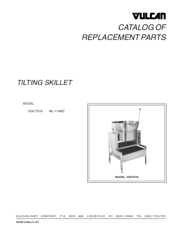 REPLACEMENT PARTS VGCTS16 TILTING SKILLET